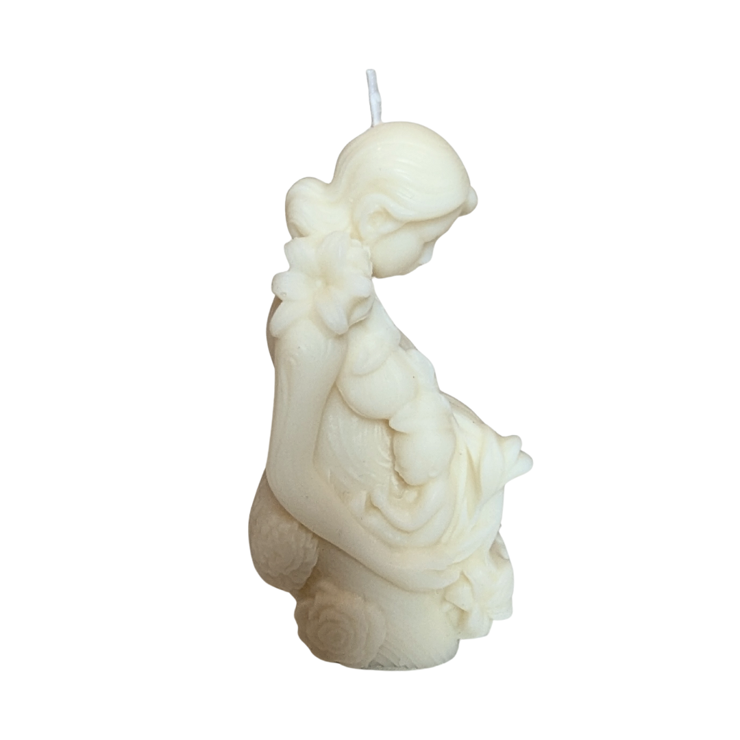 Cette bougie représente ce passage où le corps de la femme devient demeure. Elle incarne ce lien invisible entre la mère et l’enfant, ce lien qui précède les mots et qui survit au temps.