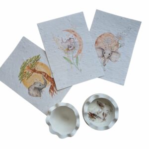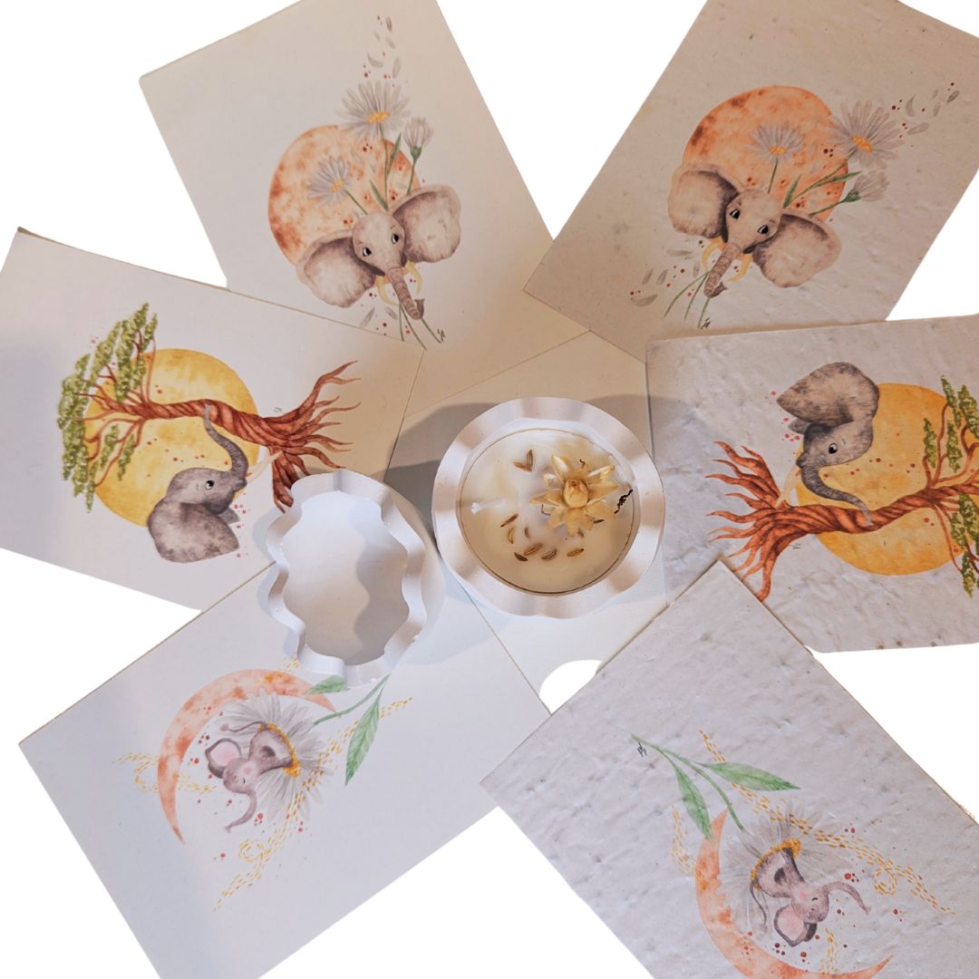 Une façon originale de célébrer la venue au monde d’un nouveau né dans une famille avec ce petit coffret qui vous propose une petite bougie “œuf”, 3 cartes à graines – à planter et 3 cartes à encadrer.
